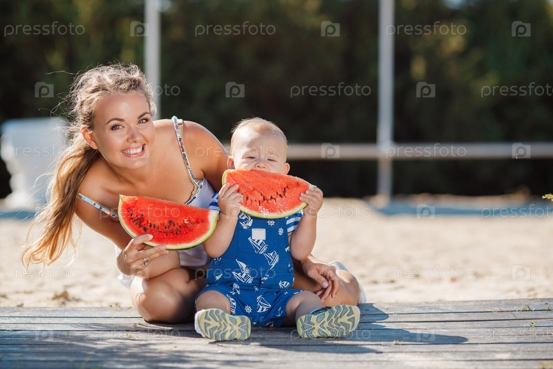 Мать и ее ребенок с арбузом