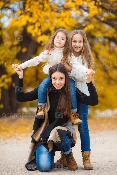 Мать и ее дочери в осеннем парке