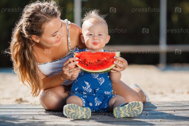 Мать и ее ребенок с арбузом