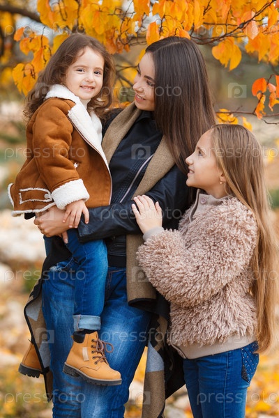 Мать и ее дочери в осеннем парке