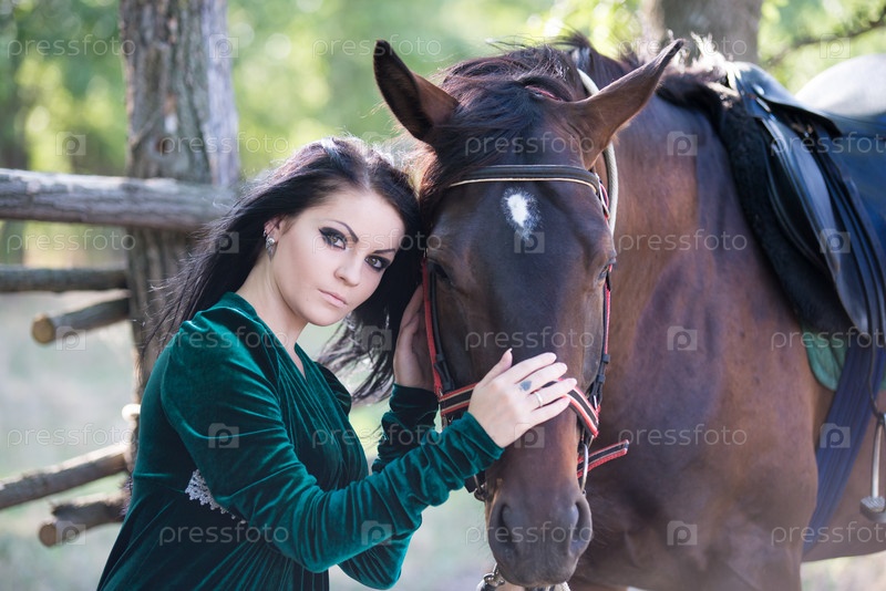 Молодая красивая девушка с лошадью на природе