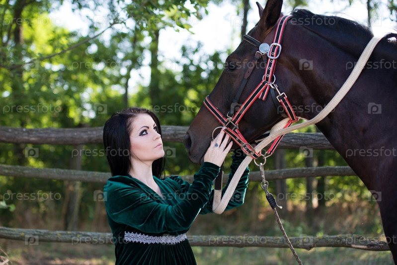 Молодая красивая девушка с лошадью на природе