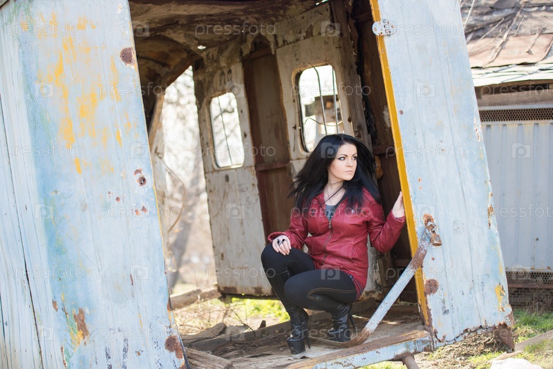 Молодая красивая девушка у заброшенного здания