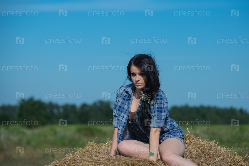 Молодая симпатичная девушка на стоге сена