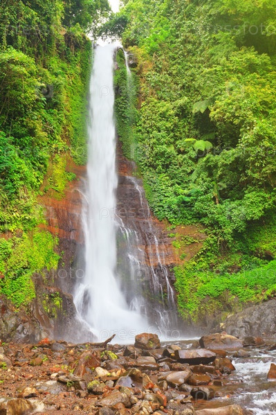 Красивый водопад в тропическом лесу, бали