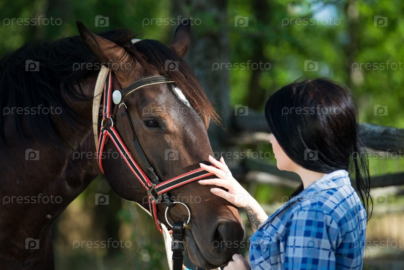 Молодая красивая девушка с лошадью на природе