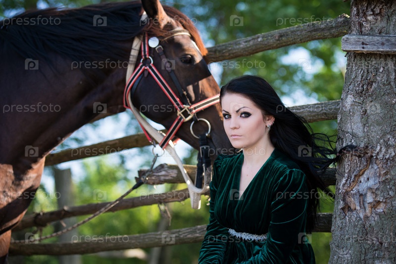 Молодая красивая девушка с лошадью на природе