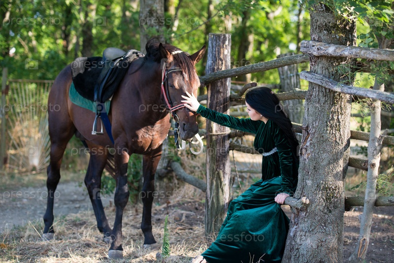 Молодая красивая девушка с лошадью на природе