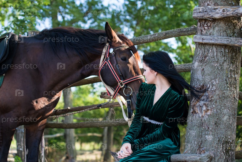 Молодая красивая девушка с лошадью на природе