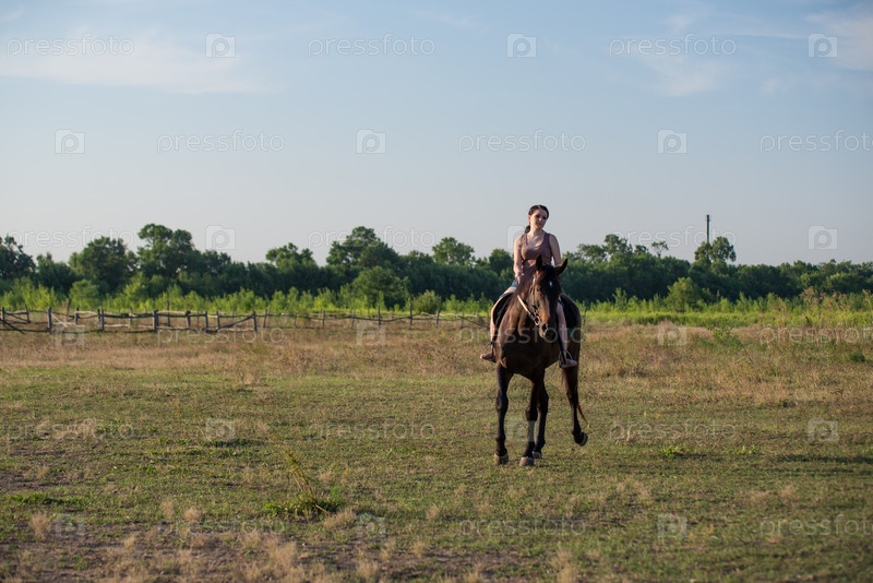 Молодая красивая девушка с лошадью на природе