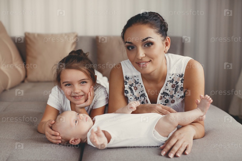 Молодая мать с двумя детьми