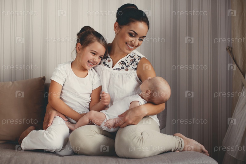 Молодая мать с двумя детьми
