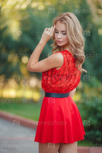 Красивая женщина в красном платье