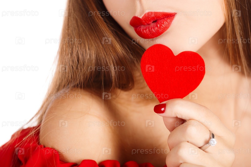 Молодая женщина с красным сердцем