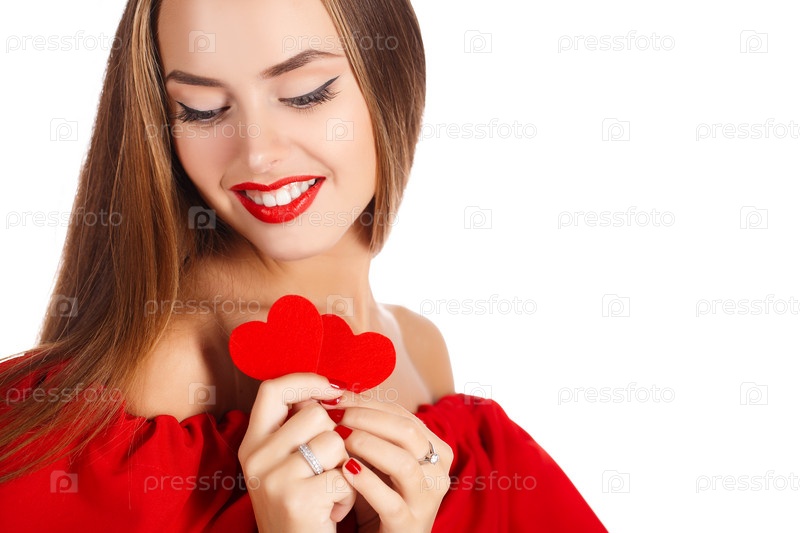 Молодая женщина с красным сердцем