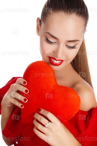Молодая женщина с красным сердцем