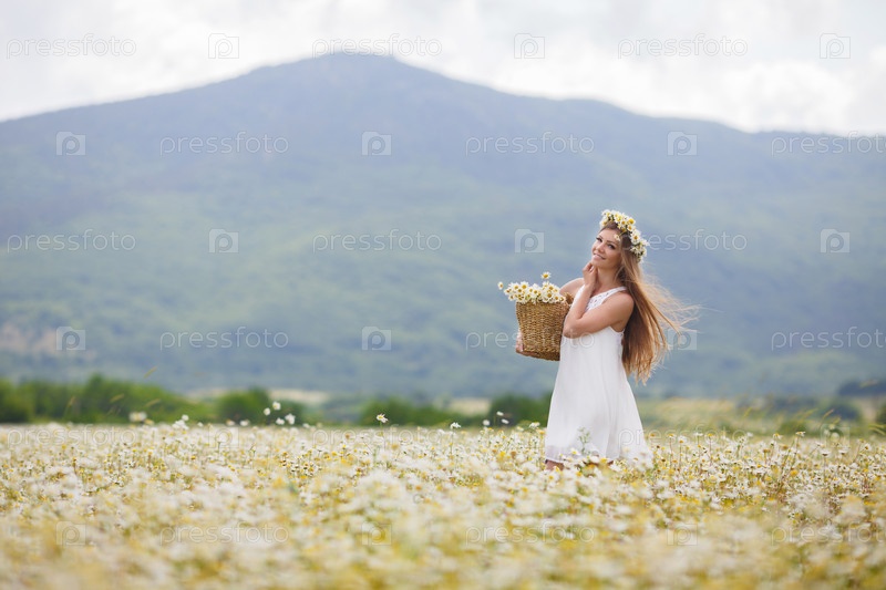 Красивая женщина в ромашковом поле
