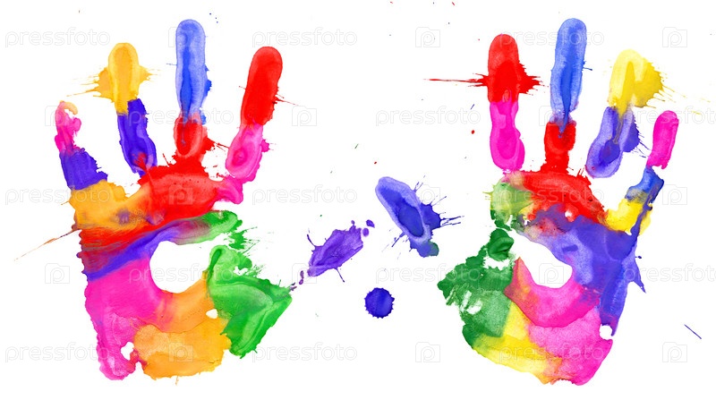 Разноцветные отпечатки рук на белом фоне