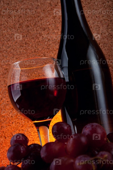 Красное вино в бокале и виноград