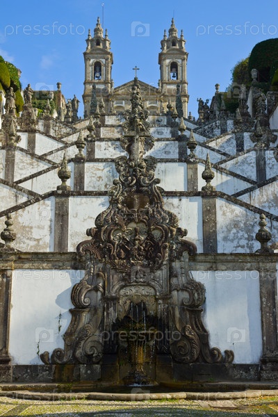 Фонтан и лестница в бон-жезус-ду монте, брага, португалия