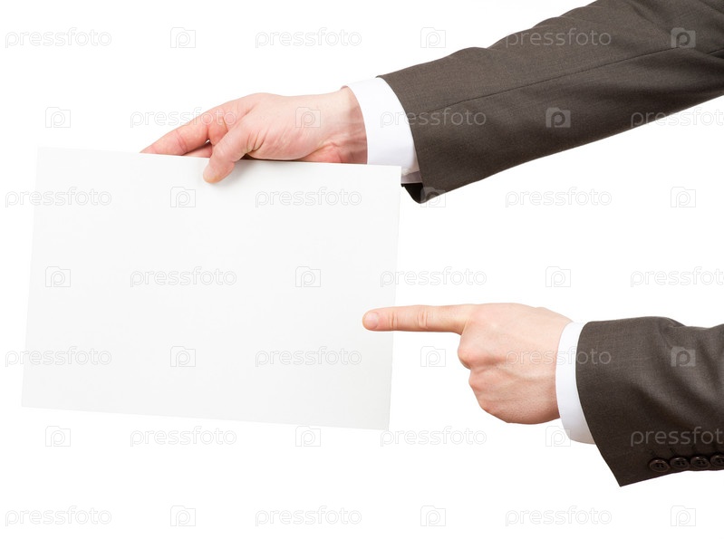 Бизнесмен, указывая на пустой документ