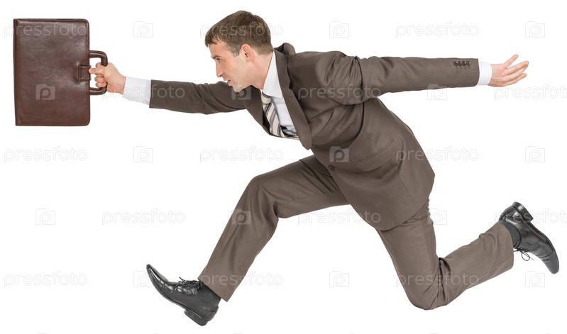 Бизнесмен, гонки вперед с чемоданом