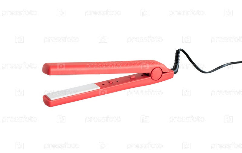 Современные щипцы для укладки волос, изолированные на белом фоне с обтравочным контуром