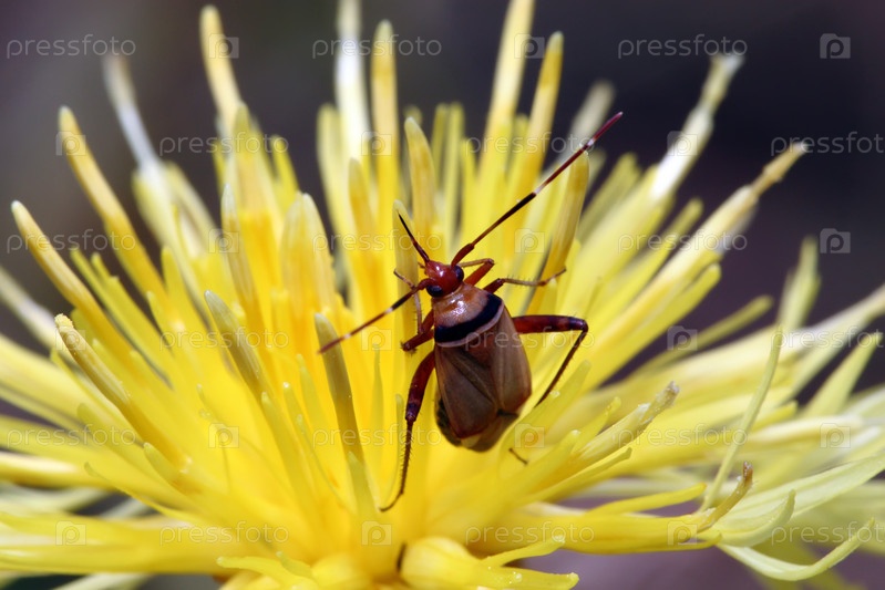 Жук с длинными усами сидит на желтом цветке