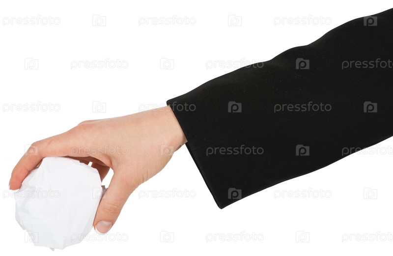 Женская рука, держа мяч мятой бумаги