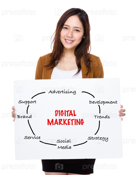 Бизнес-леди с плакатом