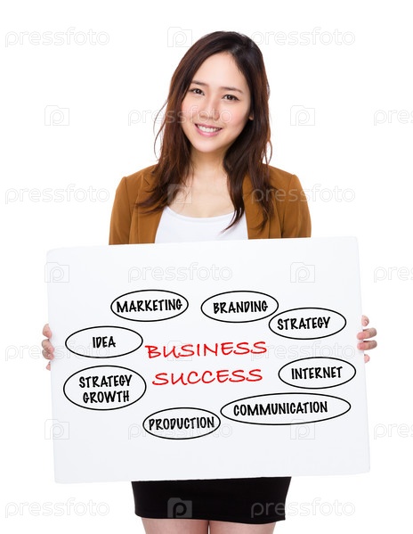 Деловая женщина показывает плакат