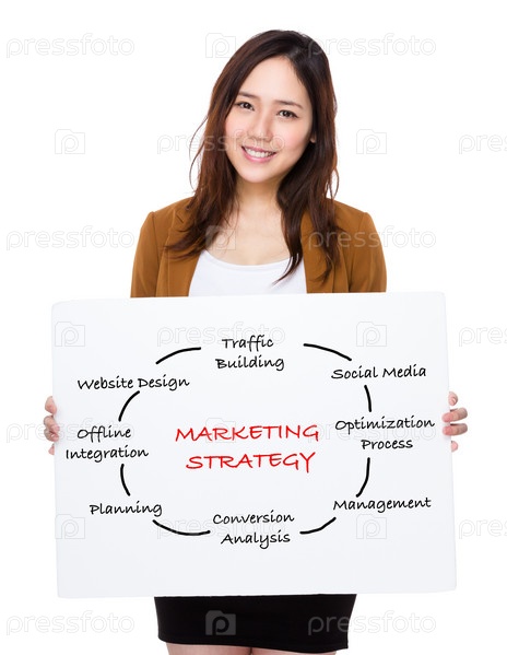 Деловая женщина показывает плакат