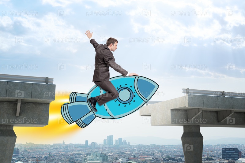 Бизнесмен, летит на ракете