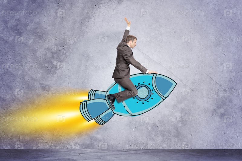 Бизнесмен, летит на ракете