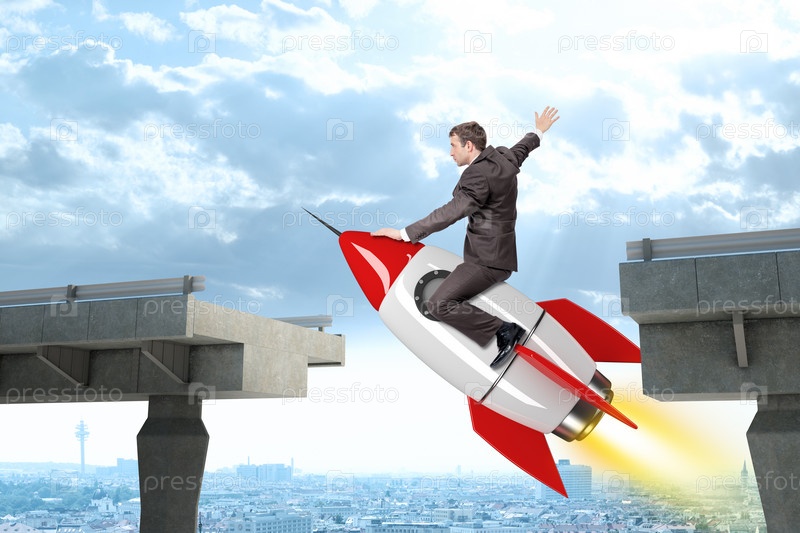 Бизнесмен, летит на ракете