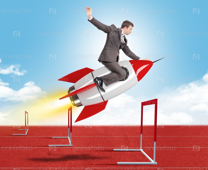Бизнесмен, летит на ракете