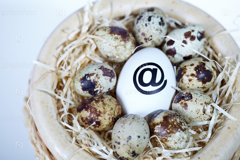 Куриное яйцо со значком электронной почты среди перепелиных