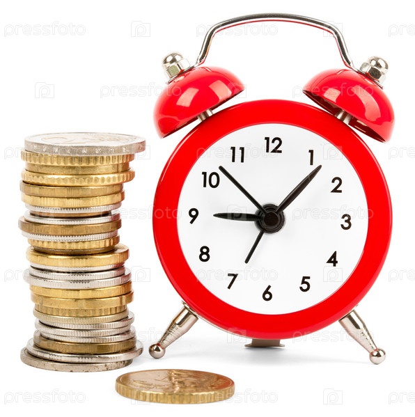 Стопка монет с будильником
