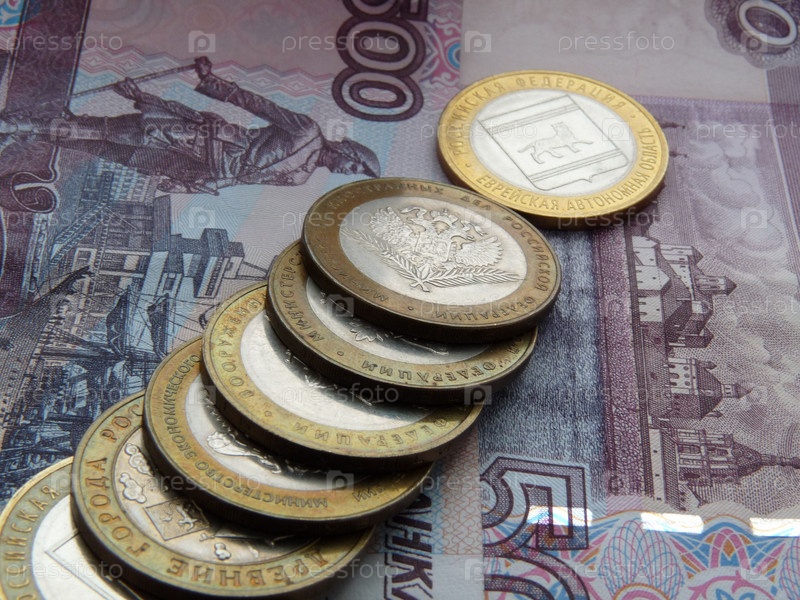 Монеты на фоне денежных купюр