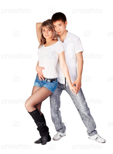 Танцующая молодая пара, изолированы на белом фоне