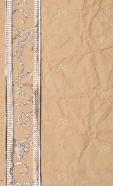Старая бумага с серебристой ленточкой