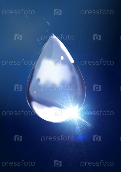 Блестящая капля воды на темно-синем фоне