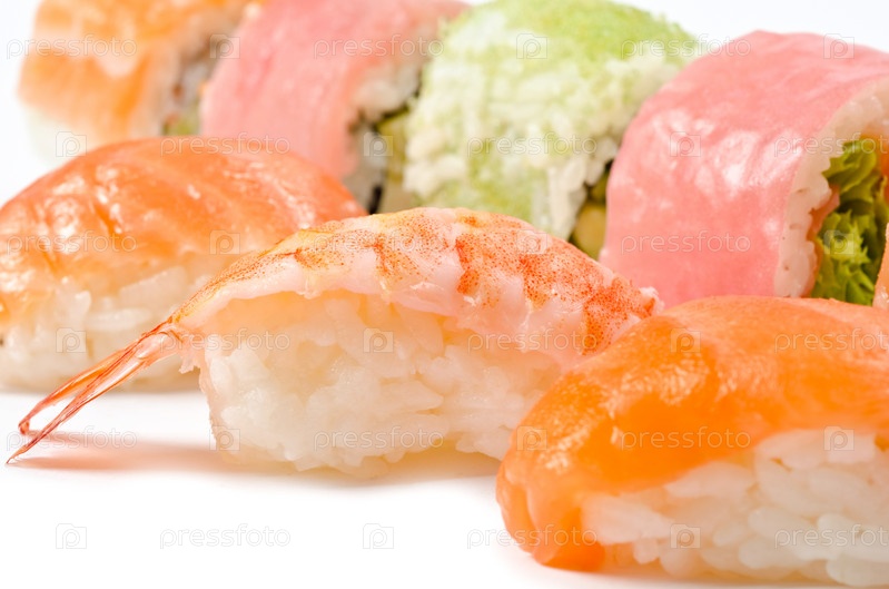 Суши крупным планом на белом фоне