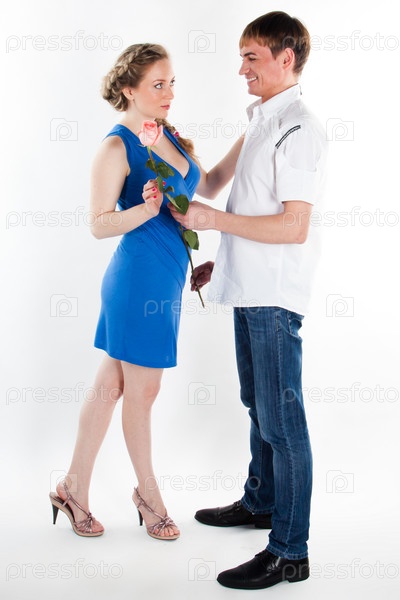 Мужчина дарит женщине цветы