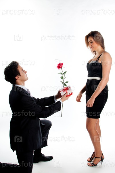 Мужчина дарит женщине цветы