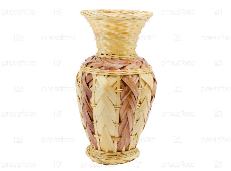 Плетеная ваза ручной работы на белом фоне