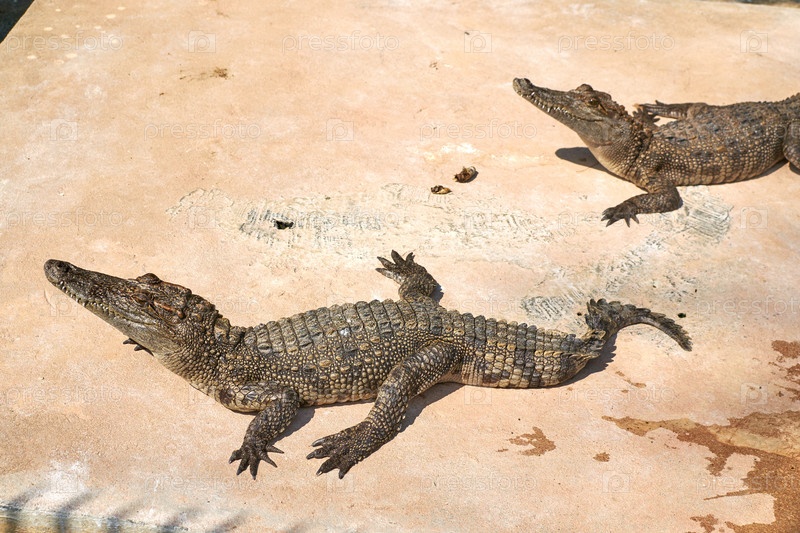 Два крокодила греются на солнце