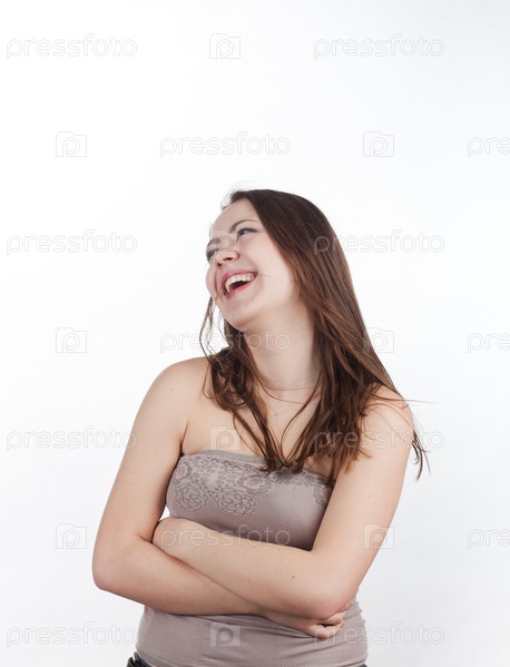 Веселая красивая девушка на белом фоне