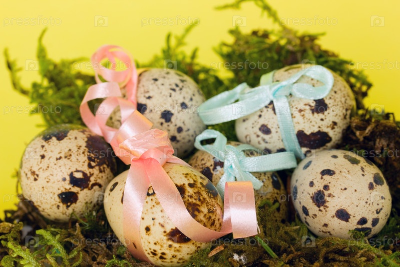 Пасхальные перепелиные яйца в гнезде