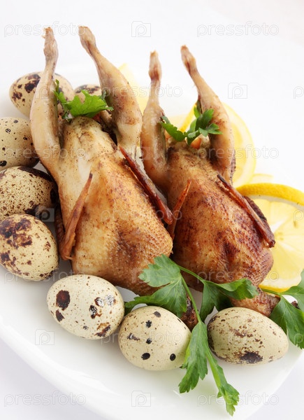 Запеченные перепела с лимоном и яйцами